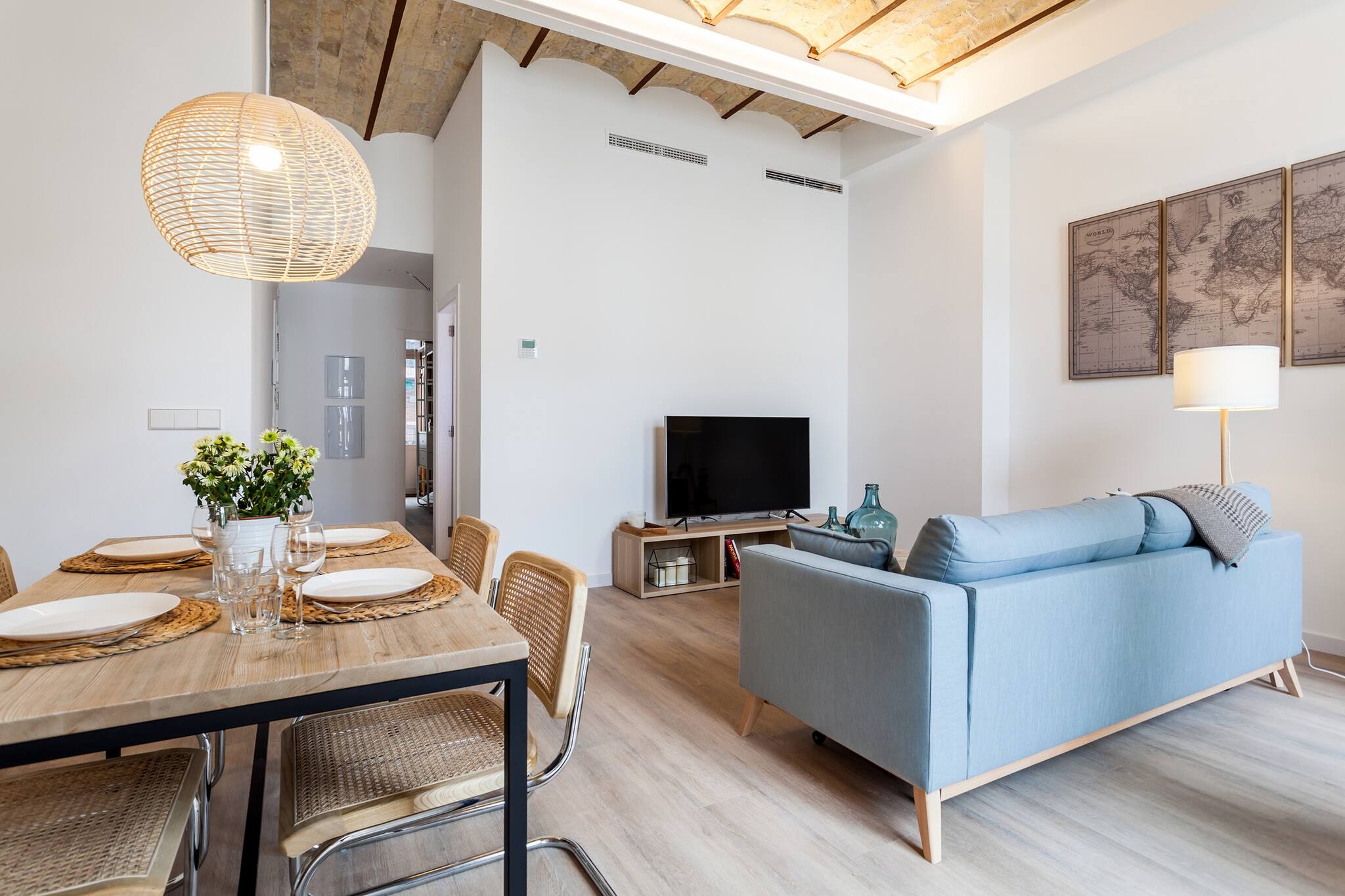 Alójate en este apartamento nuevo y elegante de 2 dormitorios ubicado en el centro de Valencia. Con sus techos altos, este acogedor espacio es perfecto para familias o parejas que buscan comodidad y conveniencia.