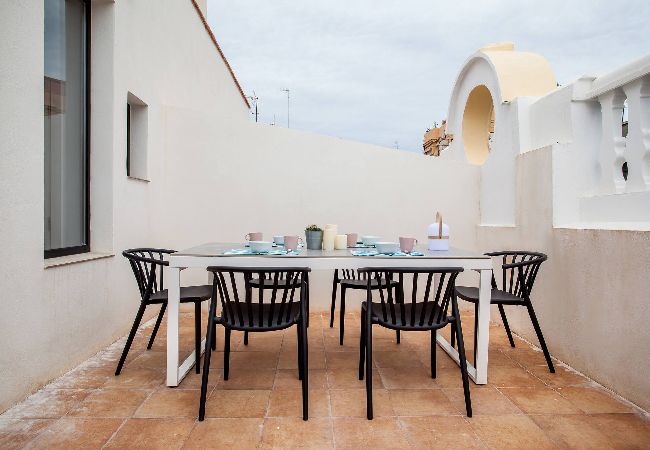 Geräumige und stilvolle Duplexwohnung im Zentrum von Valencia mit hohen Decken und moderner Einrichtung. Sie verfügt über 3 Schlafzimmer und bietet Platz für bis zu 6 Gäste. Genießen Sie 90 m² Komfort mit WLAN, Klimaanlage, TV, einer voll ausgestatteten offenen Küche, Waschmaschine und Balkon. Gelegen in einem charmanten Viertel in der Nähe von Geschäften, Märkten und Hauptattraktionen - perfekt zum Entspannen oder zur Erkundung der Stadt.