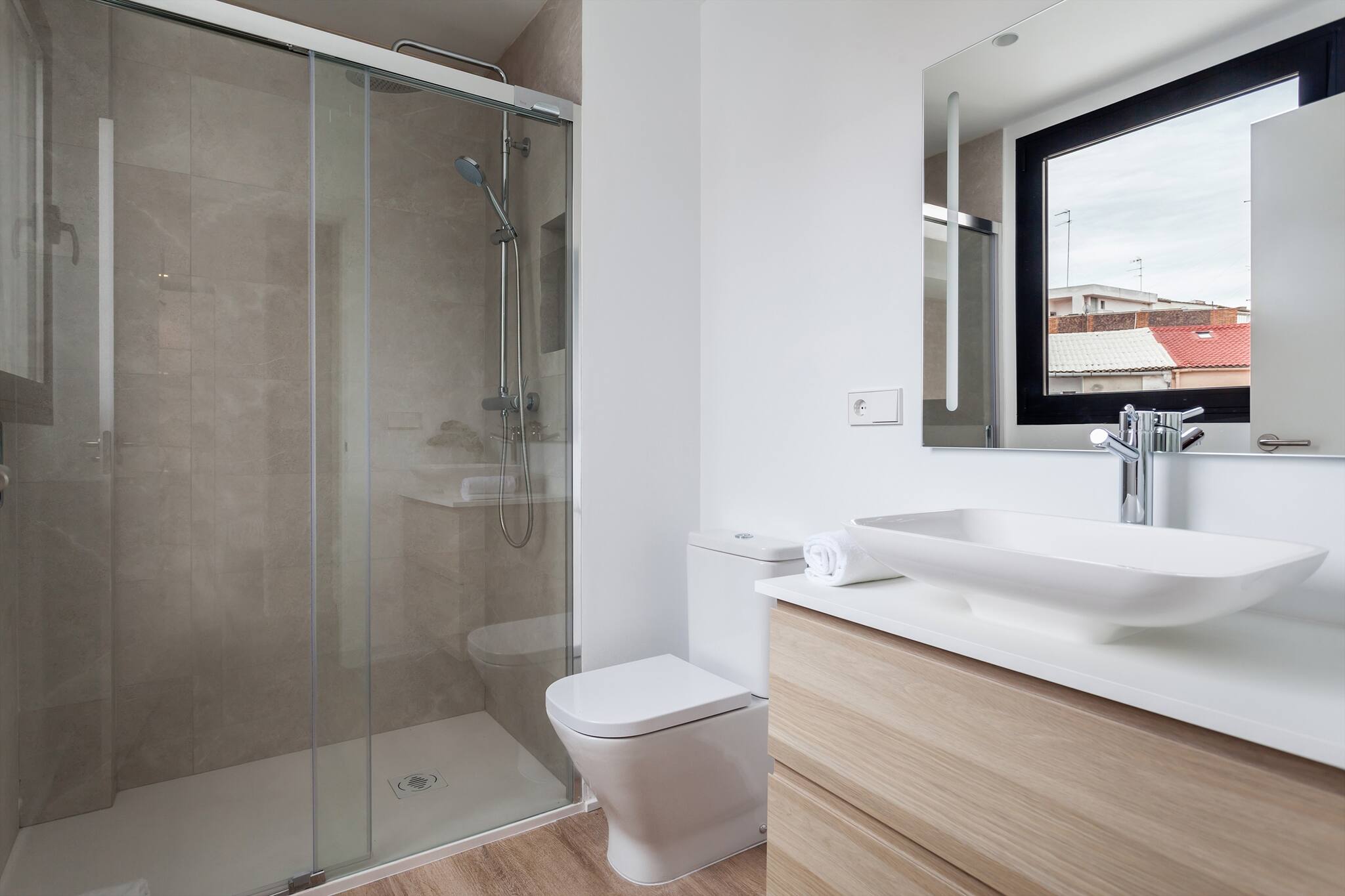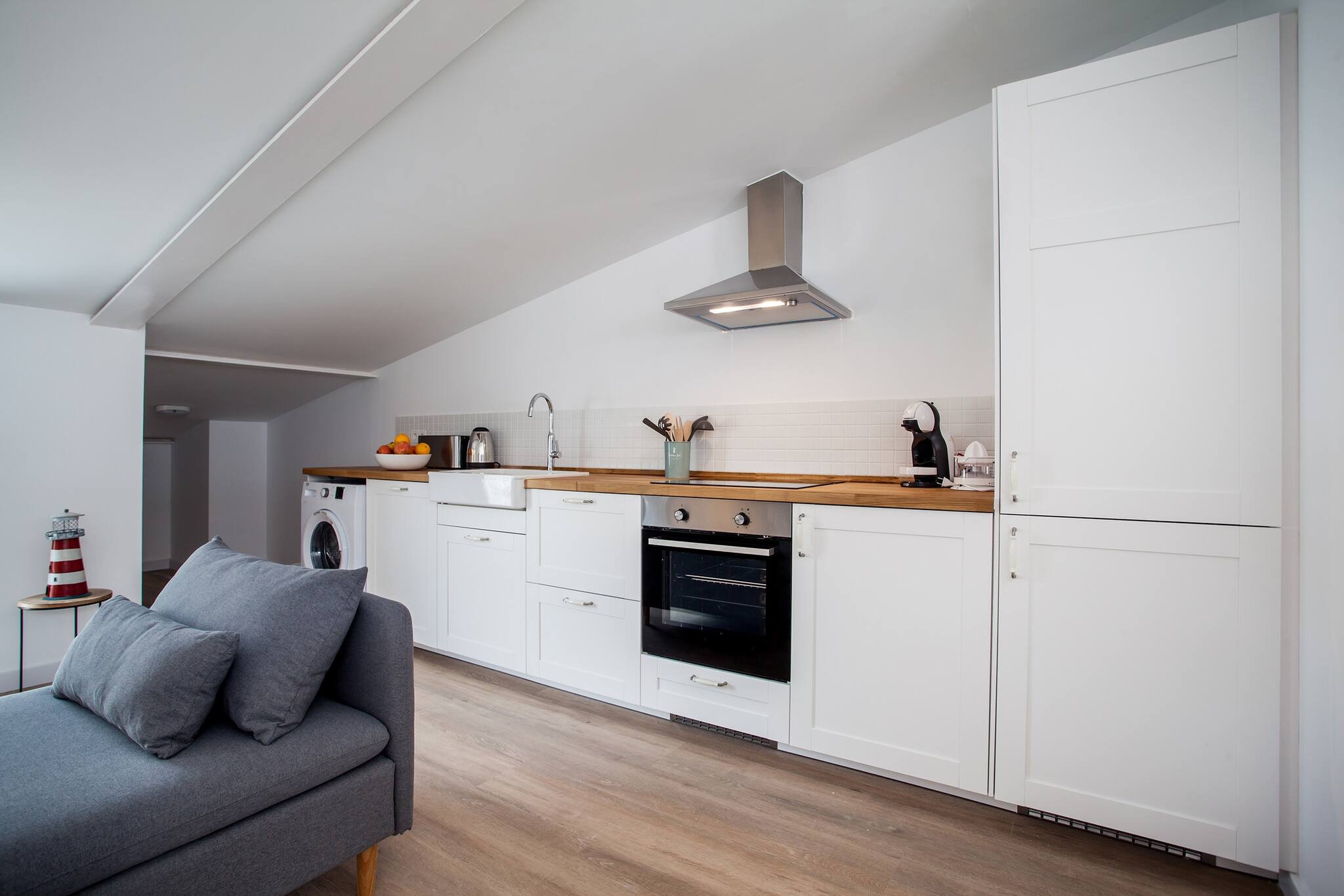 Die Wohnung befindet sich im dritten Stock und kann mit einem modernen Aufzug oder über eine Treppe erreicht werden. Durchdacht ausgestattet, bietet diese Wohnung einen komfortablen Aufenthalt und ist ideal für Familien und Gruppen von Freunden. Die vier Schlafzimmer verfügen über ein Doppelbett und drei Schlafzimmer mit je zwei Einzelbetten - wobei die Einzelbetten zu Doppelbetten zusammengestellt werden können, was zusätzlichen Komfort für diejenigen bietet, die individuelle Schlafmöglichkeiten bevorzugen. Die Terrasse ist ideal zum Frühstücken oder für die Freizeit.